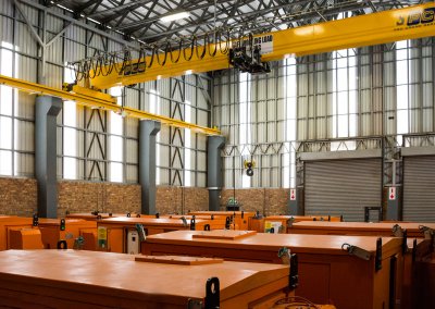 Usually, when installing an underground mini substation, workers have to hoist the cage up the mine shaft to the surface. It then has to be pulled aside with a sling to create enough space for the substation to be hoisted down the shaft. This method is used because the regular size of a mini substation is too large to fit in the mine shaft cage.