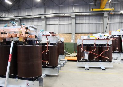 2 x 2500kva 11/550v cast resin transformers in aluminum enclosures designed, manufactured and tested at our facility in Chloorkop, Edenvale.